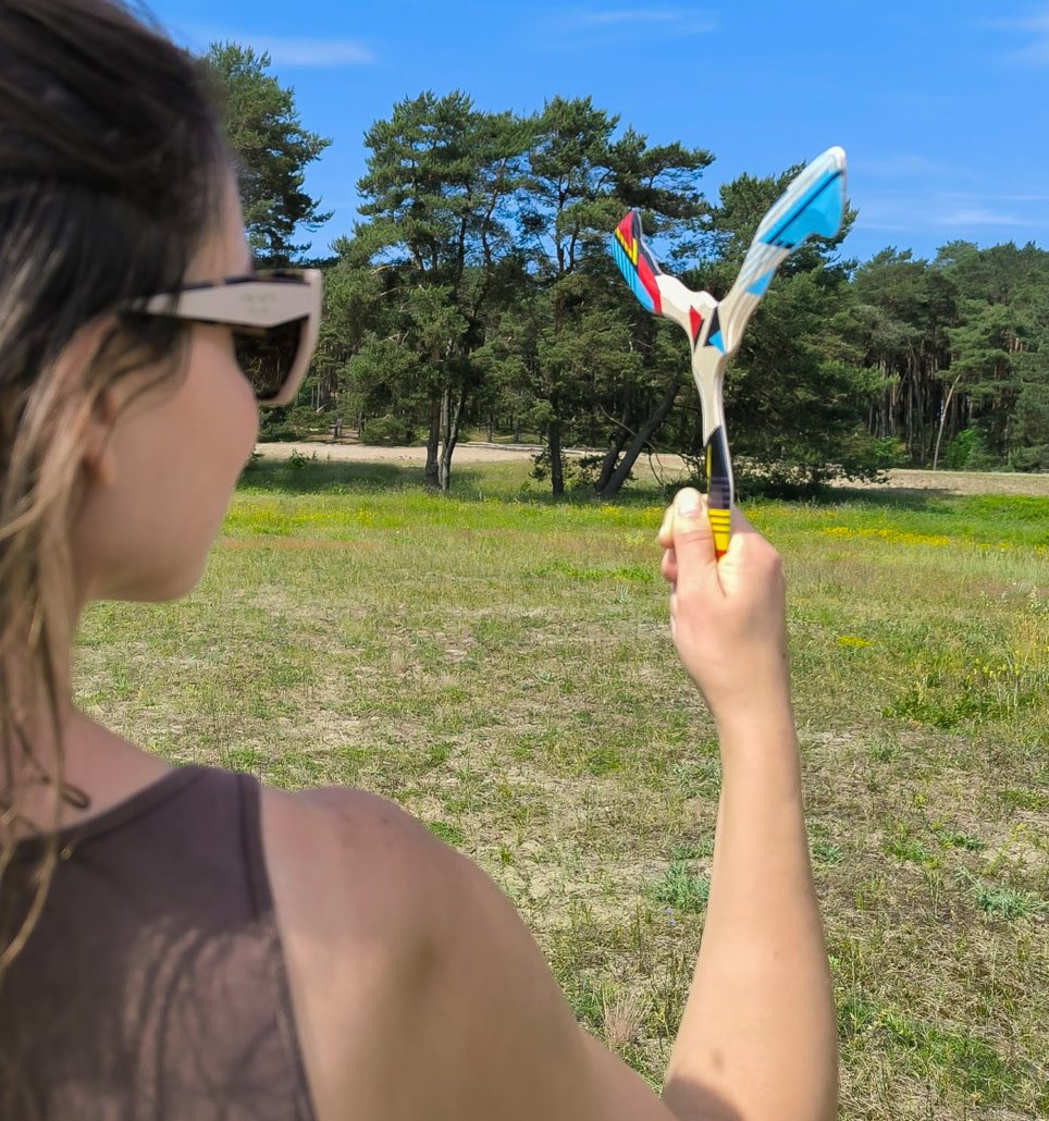 The Hurricane is a lightweight, easy-to-throw tri-blade boomerang designed for beginners and teenagers. Handcrafted from premium aircraft-grade birch plywood, its bright geometric pattern makes it easy to track in the sky.